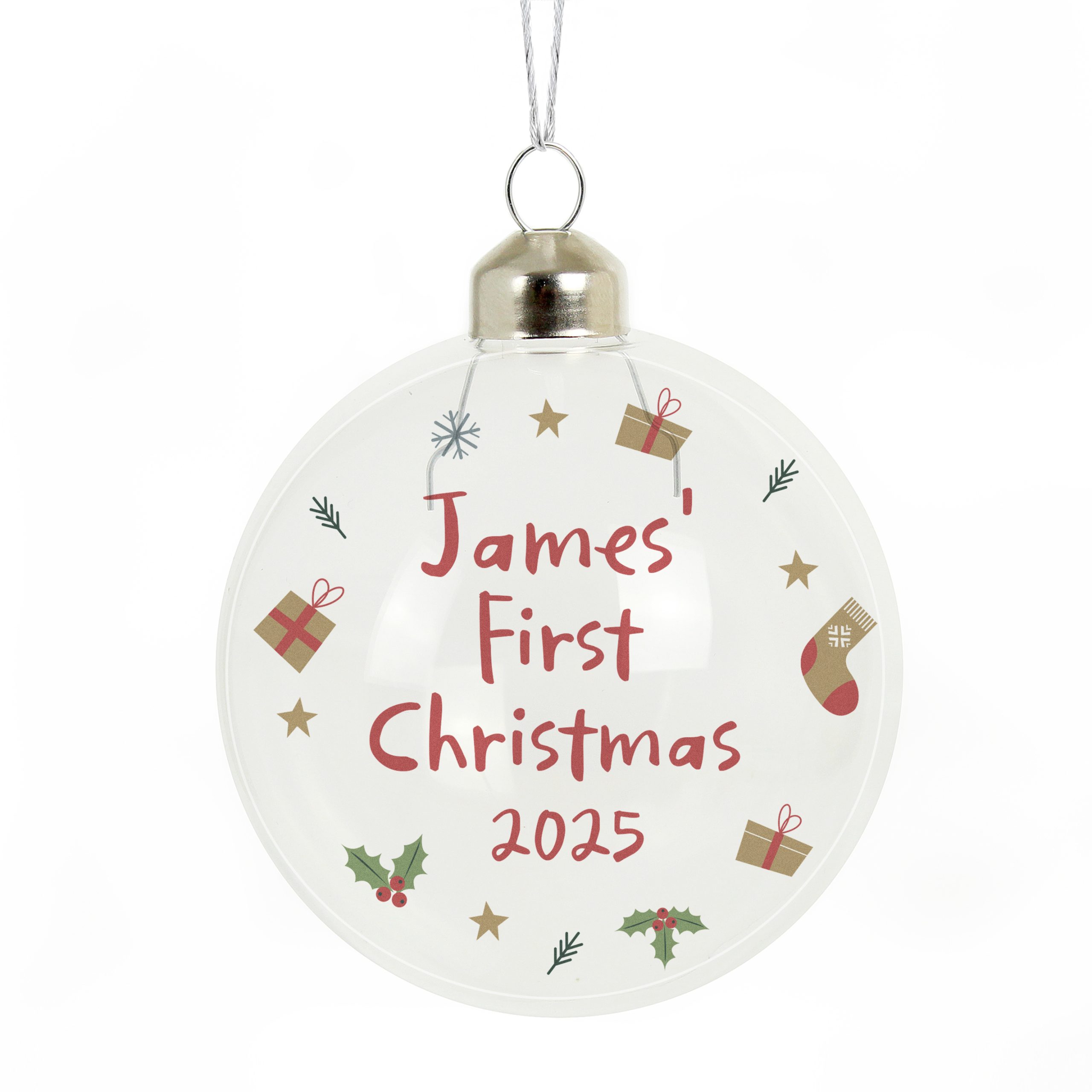 Celebrate a babies first Christmas with this Personalised First Christmas Glass Bauble, its a beautiful addition to sit on the Christmas tree as a keepsake for their 1st festive celebration!